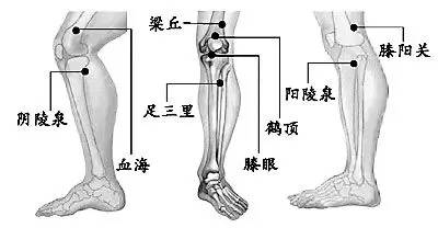 如揉膝关节内侧的痛点,按足三里、阳陵泉、血海、阴陵泉等穴位,拍打两边膝盖,可以帮助膝盖气血运行温经通络。